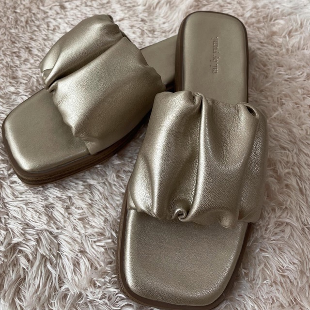 サッと脱ぎ履きが行える便利なサンダルは、アッパーのくしゅっとしたギャザーデザインがシンプルさの中に大人可愛さをプラスしてくれるのが魅力♡