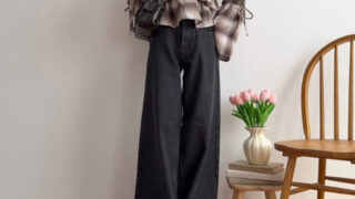 勿論タックインで着用しても決まる上にデニムと好相性となっているので、画像のようにデニム素材のパンツやスカートとのスタイリングがオススメです♡