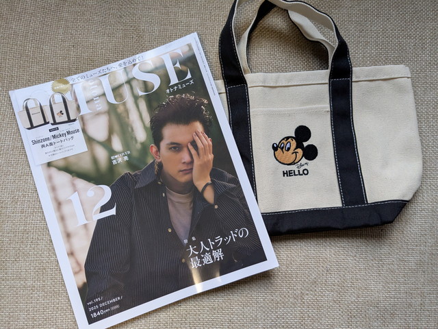 オトナミューズ2025年12月号本誌とShinzone×ミッキーマウスのキャンバスミニトート