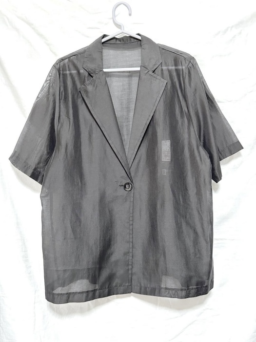 程良い透け感のシアー素材を採用したテーラードジャケットは、夏場の羽織りとして活躍してくれる事間違いなし!