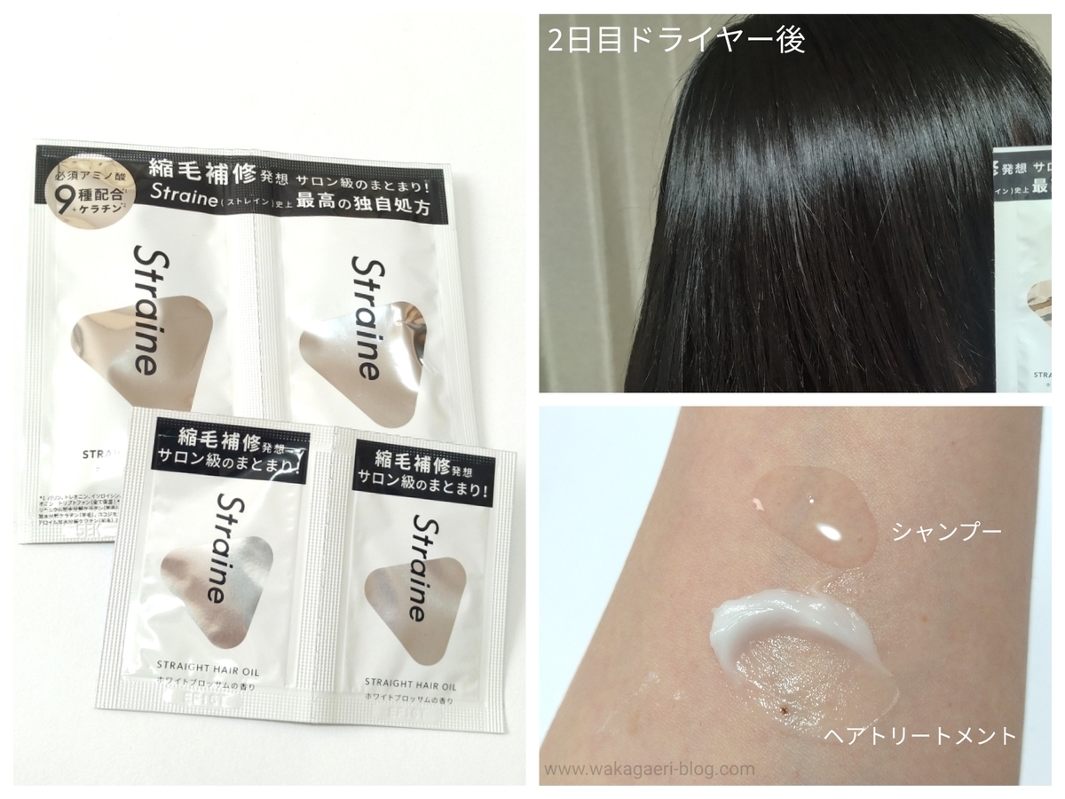 次の記事では、ストレインのシャンプーとトリートメントを3回使用後→ヘアアイロン→雨の日でもうねりにくいのか?画像比較しながら効果を検証していきます。