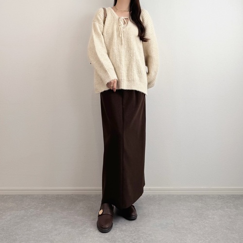 肌触りも抜群で、ゆとりのあるシルエットになっているので、初めてでも挑戦しやすい設計。短丈アウターと合わせると全身のバランスが整い、脚長効果も抜群です。