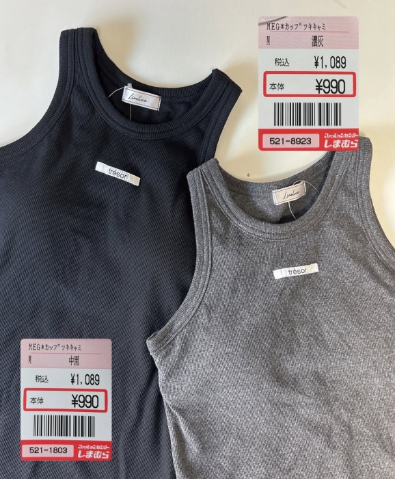 今年の夏にしまむらで大バズりしたカップ付きキャミソールも、今なら何とワンコイン+税で購入可能。