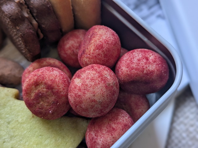 鮮やかな赤いコロンとした「フレーズボウル」。甘酸っぱいストロベリーパウダーをまとった生地が口の中でほろっとほどけ、後からじんわりとバターのコクが広がります。見た目も味わいも華やかで、クリスマスのテーブルに色どりを添えてくれる存在です。