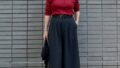 裾に向かって広がるワイドフレアシルエットがとても綺麗で美脚効果を発揮してくれるほか、コットン100%のしっかりとした厚手の素材によりオールシーズン着用可能です。