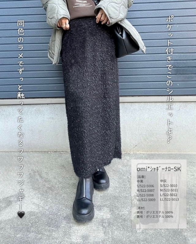 シャギー+ラメ入りで、クリスマス感が格段にアップするスカート。