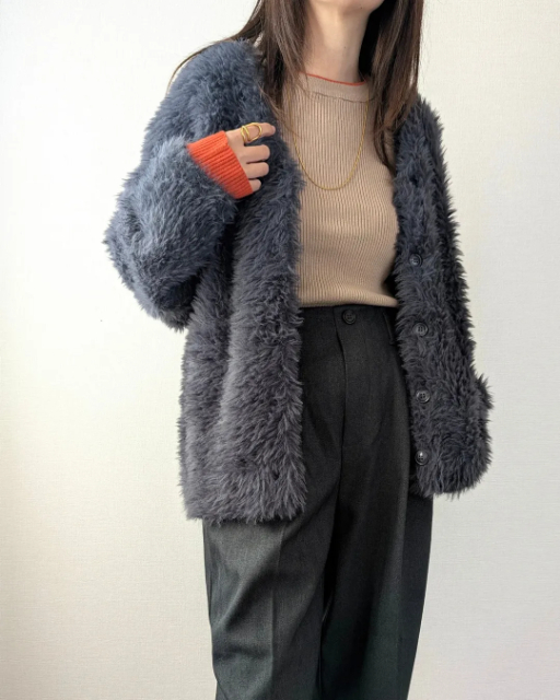 毛足の主張が控えめなシャギーカーデから、襟付きで甘さを抑えたファージャケット、デイリーに使いやすいジップタイプまで、雰囲気の違うアイテムが揃っているのも魅力。