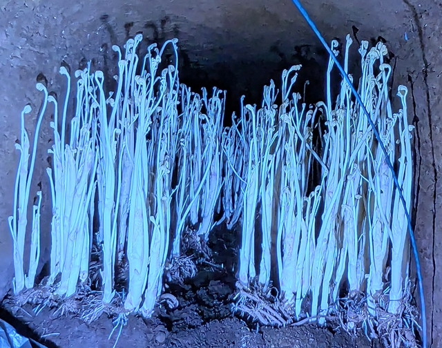 畑で1~2年かけて根を太らせた後、冬に根株を掘り取り、地下室や土室など光を遮断した環境で育てることで、白く太い新芽を伸ばします。日光を遮ることで繊維はきめ細かくなり、やわらかく、口あたりの良い上質なうどに仕上がるのです。