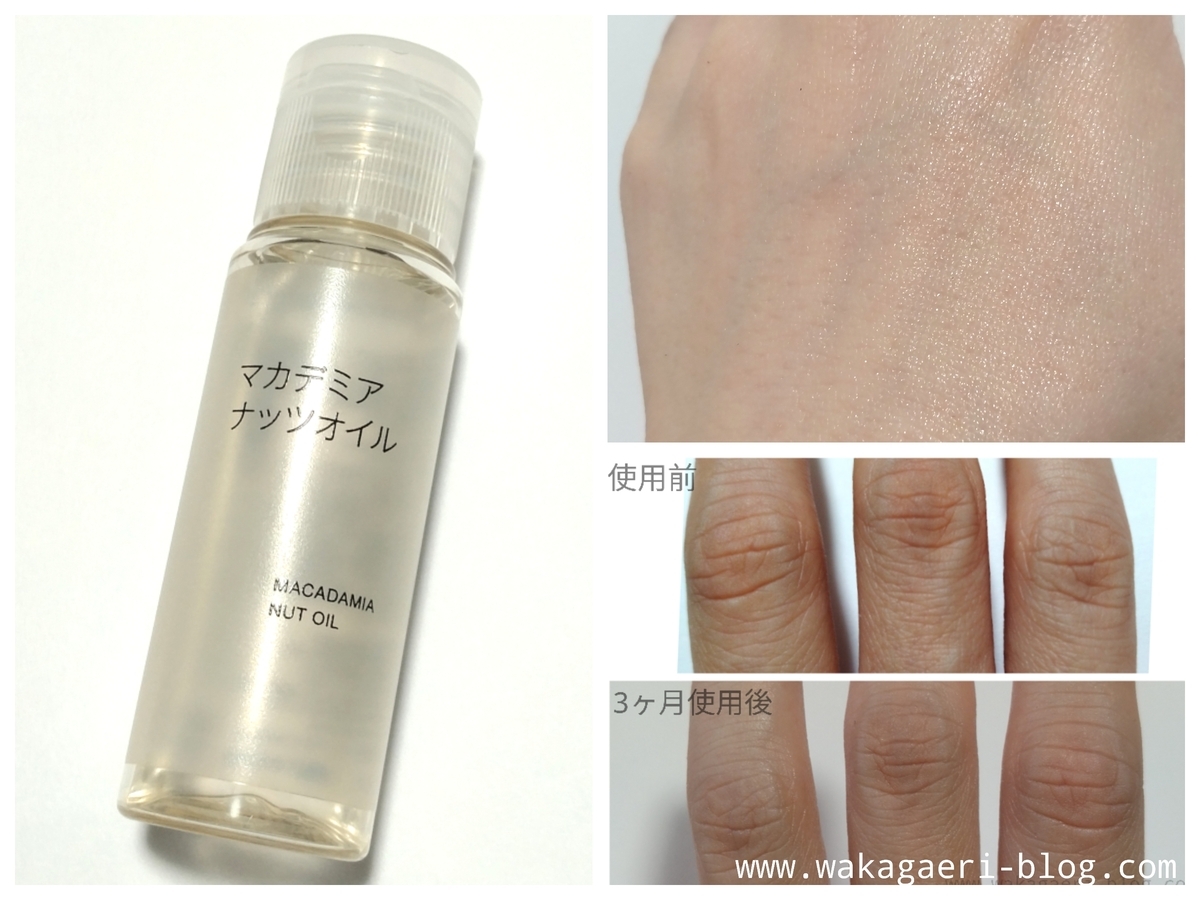 無印良品のマカデミアナッツオイルも良かったですが、現在はハンドケアとボティケアにたっぷり使えるよう他メーカーの安い大容量タイプを愛用中です。