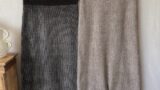 グレーの「ミニケーブルクルーネックセーター」を使ったスカートコーディネート